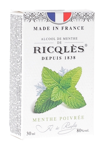 Alcool de menthe Ricqles se présente sous la forme d'un flacon de poche de 30ml.
