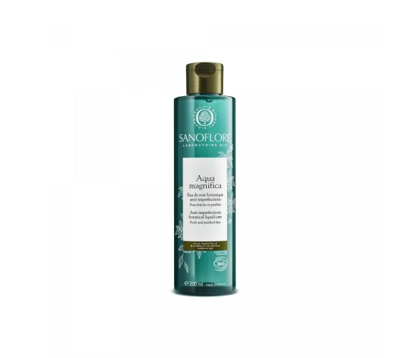 Aqua Magnifica essence botanique perfectrice de peau Sanoflore libère la peau des impuretés, resserre les pores et illumine le teint, pour une peau parfaite, régulière et lisse à la vue et au toucher.