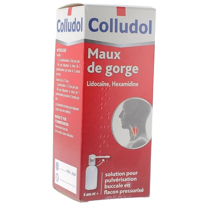Ce médicament est recommandé pour les maux de gorge peu intense et sans fièvre, et en cas d’aphtes. Il est conseillé de ne pas le prendre avant le repas. Le Colludol solution pour pulvérisation buccale en flacon pressurisé - flacon de 30 ml est destiné aux adultes et enfants âgés de plus de 6 ans.