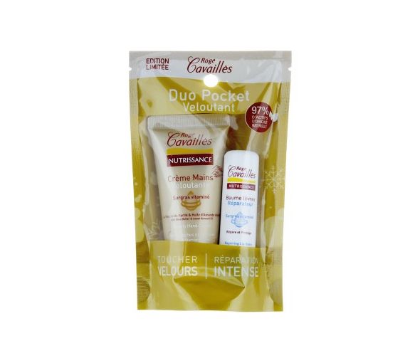 Composé d'une crème pour les mains et d'un baume pour les lèvres, le Duo pocket veloutant de Rogé Cavaillès se distingue par sa formule spécialement conçue pour respecter et prendre soin des peaux sensibles. Les deux produits contiennent de la glycérine pour hydrater, du beurre de karité pour nourrir et protéger la peau, ainsi que de la vitamine E pour ses propriétés antioxydantes. Particulièrement adapté pour les peaux sèches et sensibles, le Duo pocket veloutant garantit une hydratation en continu tout au long de la journée.