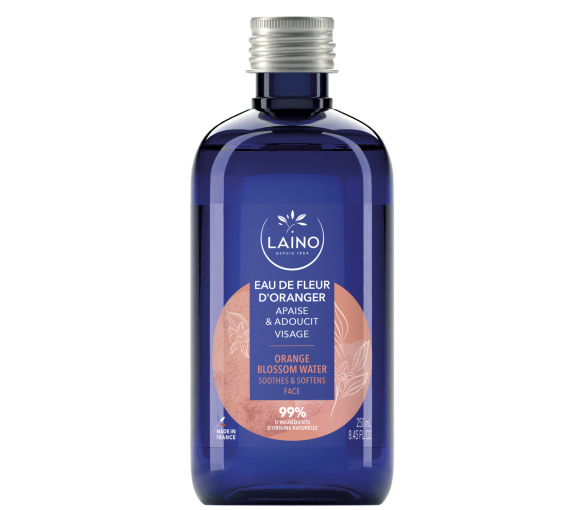 Eau de fleur d'oranger relaxante Laino se présente sous la forme d'un flacon de 250 ml.
