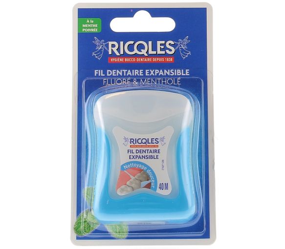 Fil dentaire expansible fluoré & mentholé Ricqles - 40 mètres
