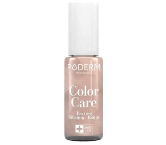 Vernis color care top coat Poderm se présente sous la forme d'un flacon de 8ml
