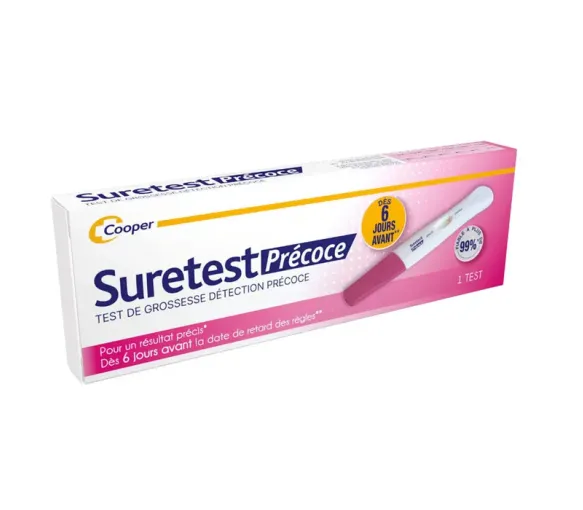 Découvrez Suretest, le test de grossesse précoce développé par Cooper, une solution rapide, précise et simple pour confirmer une possible grossesse. Grâce à la réactivité élevée de ce test, déterminez dès 5 jours avant la date prévue de vos règles si vous êtes enceinte.