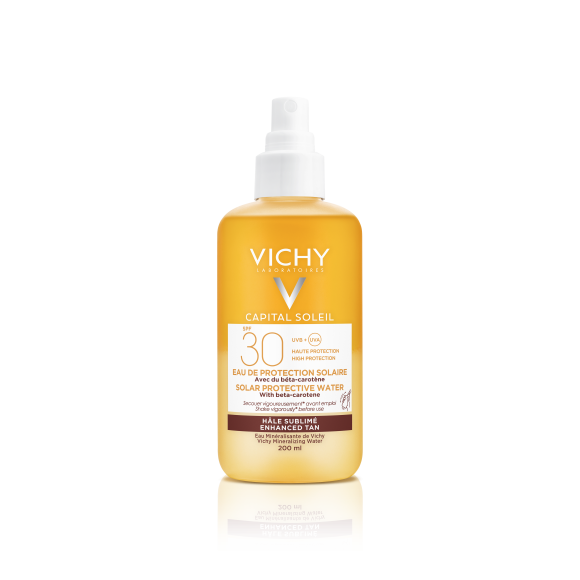 Le spray Capital Soleil SPF30 à l'huile invisible de Vichy se distingue par sa texture légère et non grasse, qui facilite son application sans laisser de résidus. Ce produit est formulé pour offrir une protection large spectre contre les UV tout en étant enrichi d'antioxydants, notamment la vitamine E, qui contribue à lutter contre le stress oxydatif, un facteur clé de la dégradation cutanée.